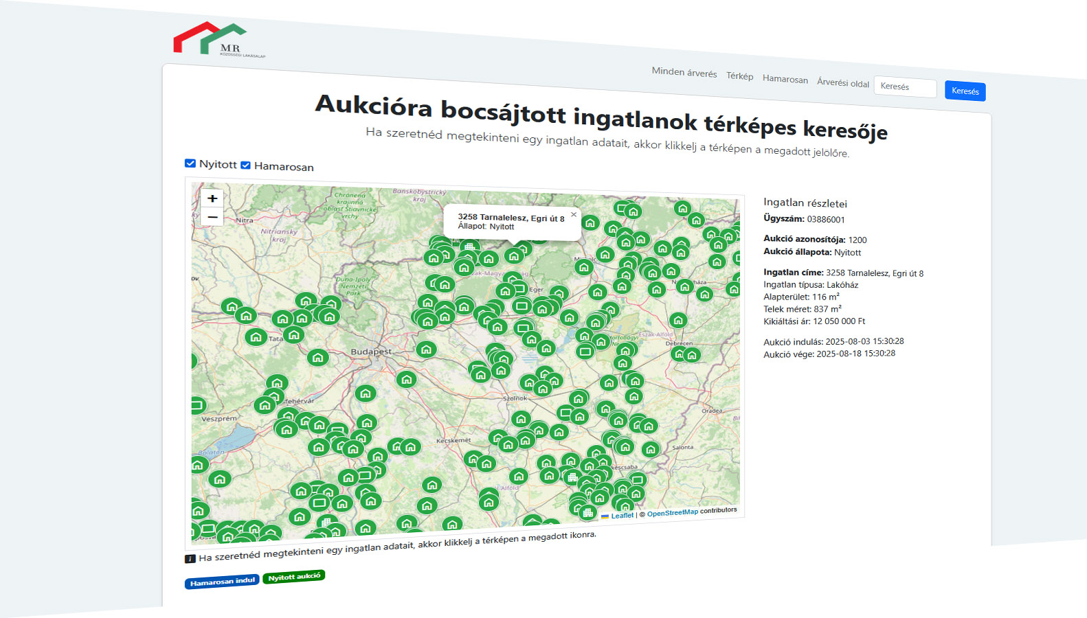 Büszkék vagyunk a kifejlesztett rendszerünkre, mert az országba először nekünk sikerült egy ilyen összetett aukciós rendszert ötvözni a mai korszerű GEOinformatikai megoldásokkal.